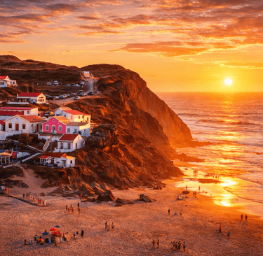 Located inside the protected Costa Vicentina Natural Park, this wild Atlantic town feels worlds away from Albufeira’s nightlife or Vilamoura’s polish. Here, cliffs are raw, beaches stretch endlessly, and the air smells of salt and eucalyptus.